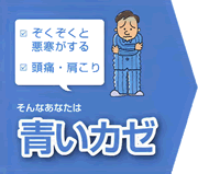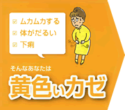 「熱」のかぜは、発病した時から熱が高く、のどの晴れや痛み、黄色く粘りのある鼻水や痰、のどの渇きといった症状が現れます。部屋の空気をよく換気することも忘れずに。