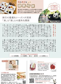 旅行中は普段よりたくさん移動し、歩く機会が増えます。その時、内臓では『肺』に負担がかかるとのこと。中医学では『肺』はエネルギーを全身に送り、また肺と鼻・口はつながっていると考えるため、肺が疲れていると感染から身体を守る働きが弱くなることもあり得るとのこと。『肺』の働きについて教えてくれますのは、ご自身も旅行を愛する昭和63年創業の室蘭市ツケダ薬局本店の附田綾さんです。旅行中の朝食時に摂ると良い食事についても教えてくれます。